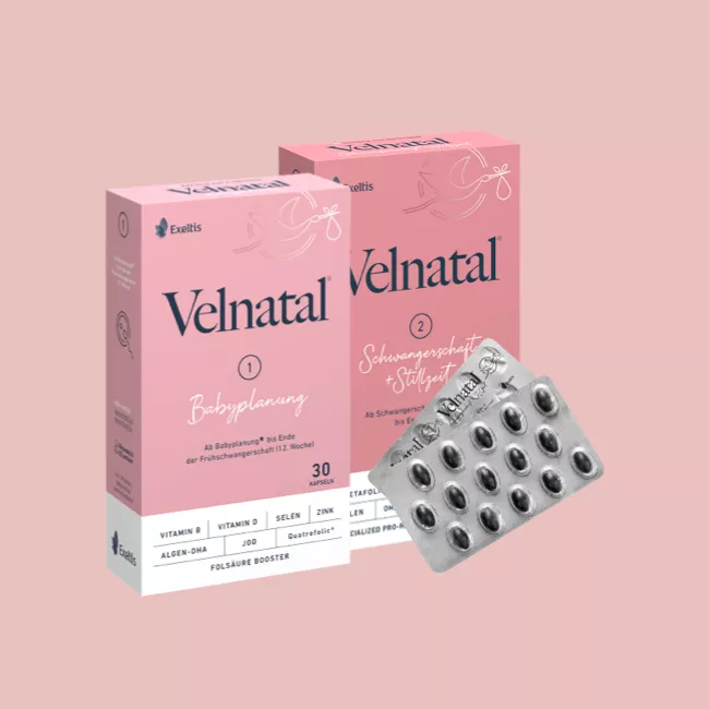 Mit Velnatal® kannst du dich sowohl bei Kinderwunsch als auch in der Schwangerschaft und Stillzeit auf eine gezielte Unterstützung verlassen. Aber: Es ersetzt keine gesunde Ernährung, sondern dient lediglich der Ergänzung. Bitte nimm in der Schwangerschaft und Stillzeit keine Präparate, ohne vorher mit deinem behandelnden Arzt Rücksprache zu halten. Eine Überdosierung von bestimmten Nährstoffen ist mit Risiken verbunden.